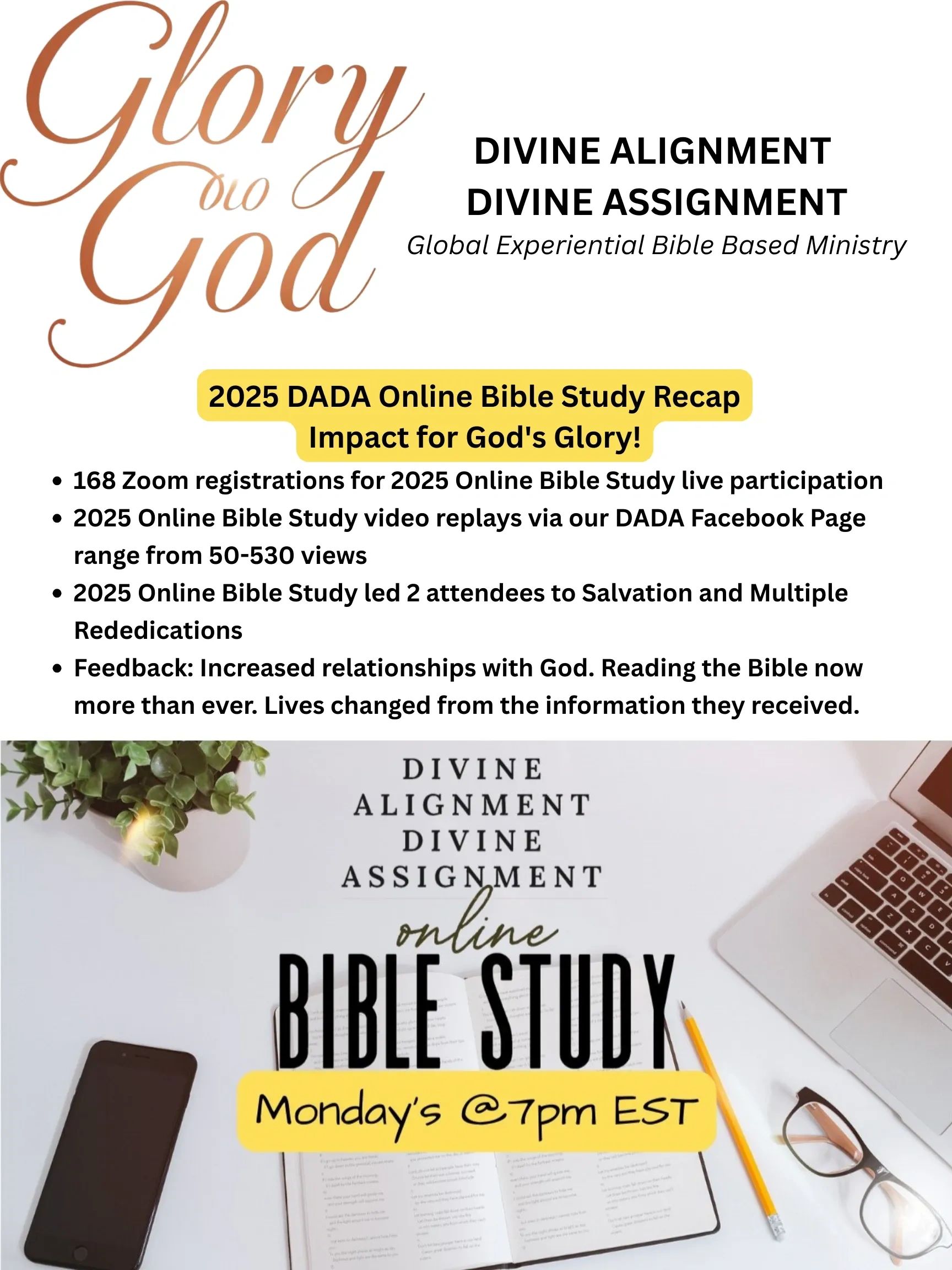 Our 2025 Divine Alignment Divine Assignment Online Bible Study Series featured a Special Guest Teacher every Monday at 7pm via Zoom.
